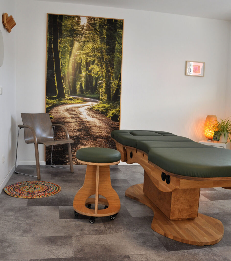 Mein Behandlungsraum ist inspiriert von der Natur, die für mich eine besondere Heilkraft hat. So wie ein Spaziergang im Wald Körper und Geist belebt, soll auch der Raum eine wohltuende, beruhigende Atmosphäre schaffen. Warme Farben, natürliche Materialien und sanftes Licht laden zum Entspannen ein und unterstützen den Heilungsprozess von Anfang an.